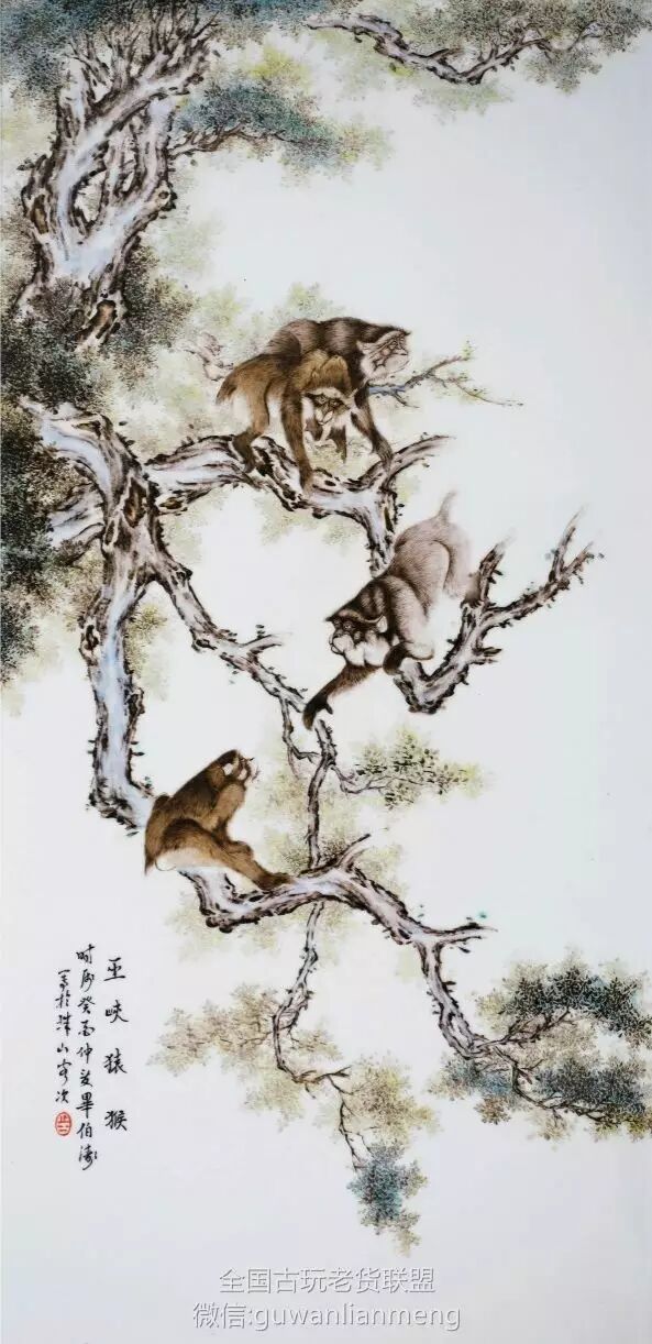 民国 毕伯涛粉彩巫峡猿猴挂屏(50-70万)