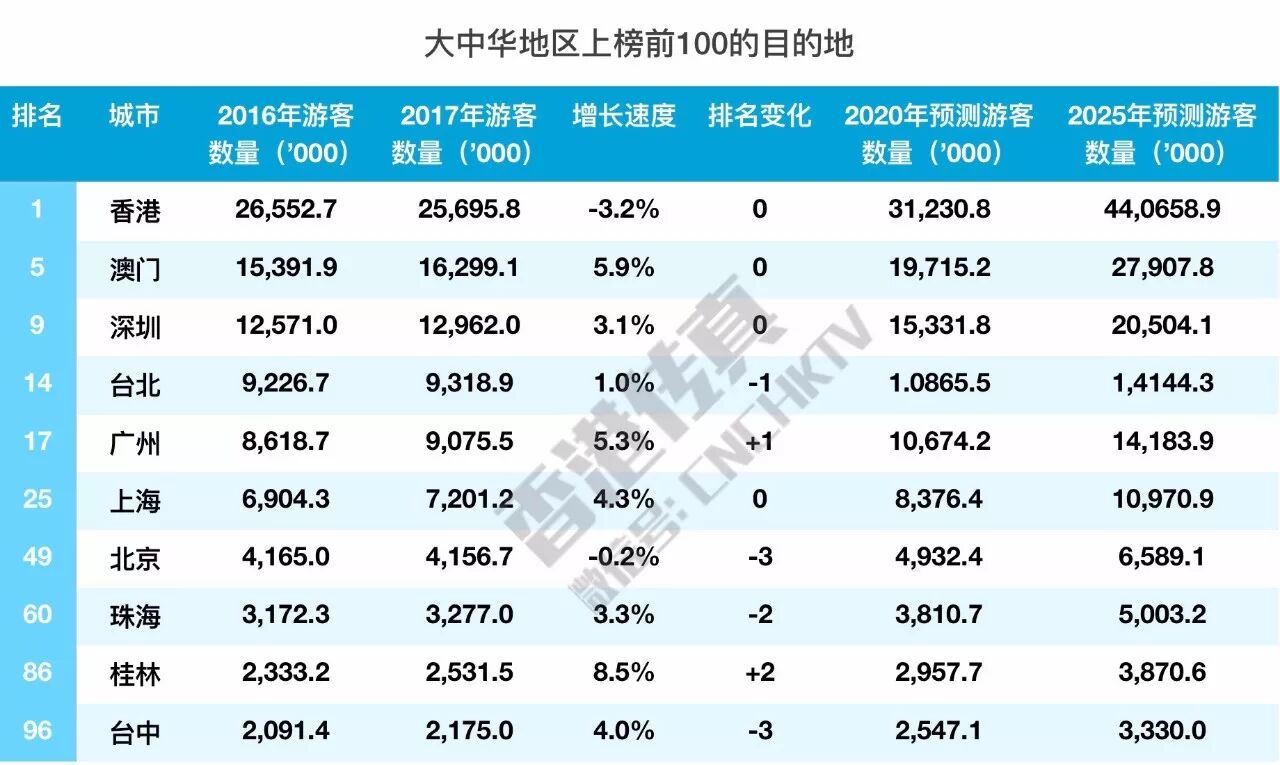 厉害了!我们看到不仅香港排在了最受欢迎目的地的第1位,中国还有两座城市上榜,一是排名第5的澳门,二是排名第9,距香港一河之隔的深圳。