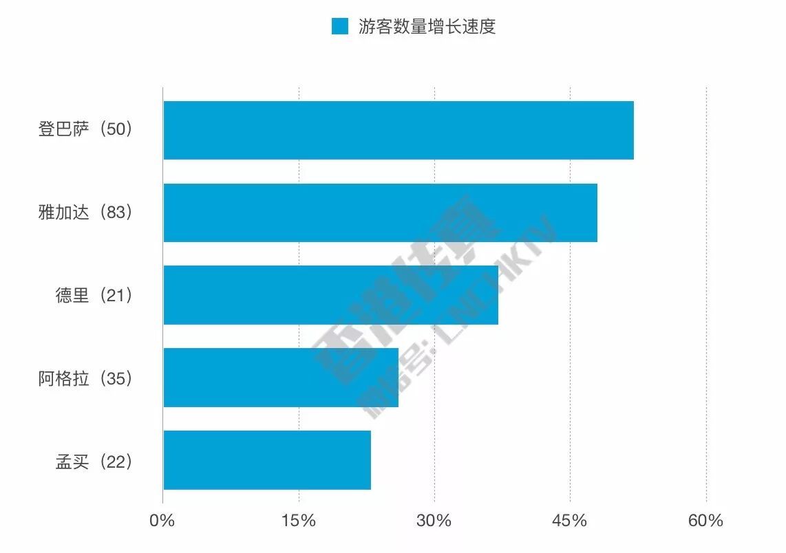 值得一提的是,印度尼西亚的登巴萨作为巴厘岛的港口城市,位于首位,这得益于印尼放宽了对中国的签证措施,赢得了大量中国游客的青睐。另外,由于印度2014年出台了电子签证政策,新德里在2017年比2016年增加了280万的游客数量。