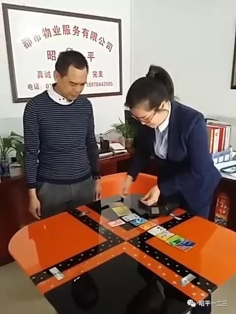 昭平都市物业公司出纳李水香,今早上班途中在锦绣榕园南京路人行道上发现钱包一个,里面有现金六百,银行卡多张,身份证一张。经过多方寻找,终于联系到失主,失主为表感谢,亲自来到公司办公室向李水香和所有参与此事的公司职员握手道谢,并送来慰问品。