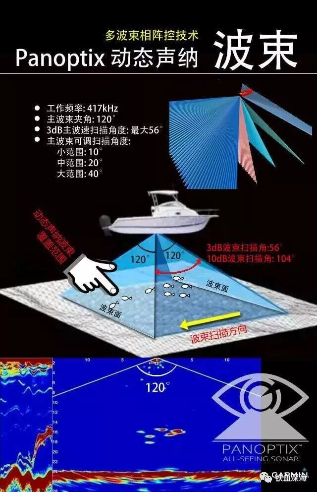 形象地表达一下,就犹如一把有256个扇骨的折叠公子扇,扇柄在上,扇面在下,前后56°的范围内不断摇动,每个扇骨都独立发出声波,独立接收,所以,传统声呐单一脉冲的回波局限性被得到了彻底的改善。你看到的,基本就是下面扫描区域的实时动态,在实际的使用中,调整探头的角度,可以清晰地看到地形的变化。当然,对一些希望看底层鱼的钓友们,我感觉是可以实现了,当你看到那些亮点在湖底滚动时,其实就是底层鱼的运动。![]()