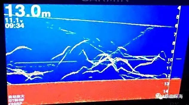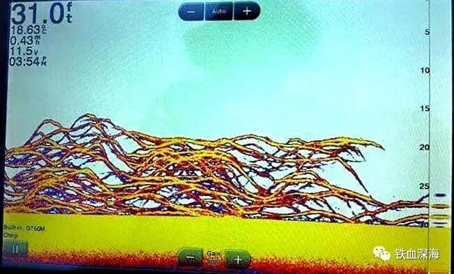 下面是一个钓友用GAIMING5DV机器配置GT8探头实战中拍摄的显示画面,估计不咬钩,要不也无暇去拍照片,哈哈。从这个画面的表达来看,CHIRP的显示确实让人赏心悦目(其实只是中偏低的配置)。。。既然看了这个画面,就让我们一起来解读一下这个画面:![]()