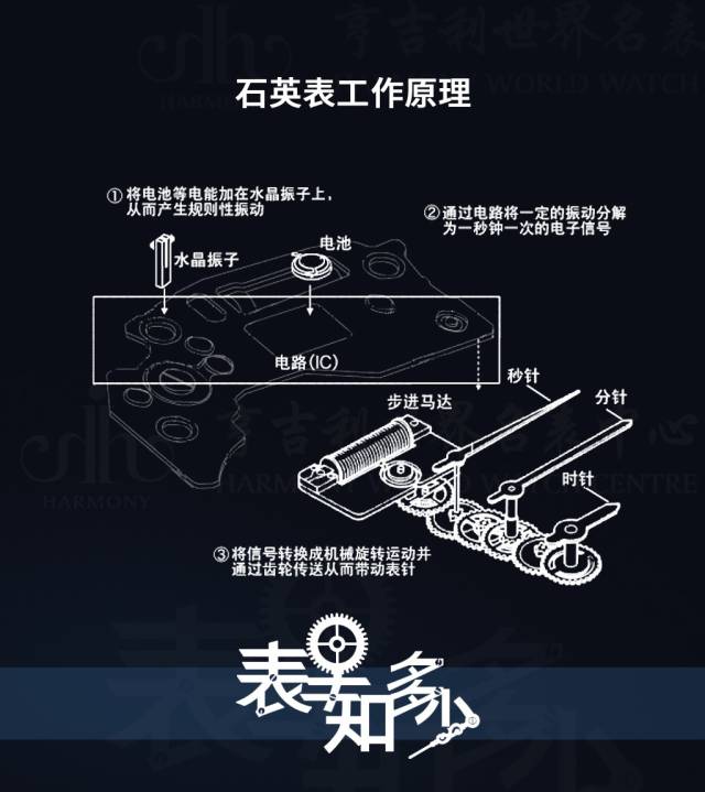 石英表是一款电子产品,它应用的原理是石英晶的周期性持续发振,走时的精准度与晶振精度、稳定性有关。