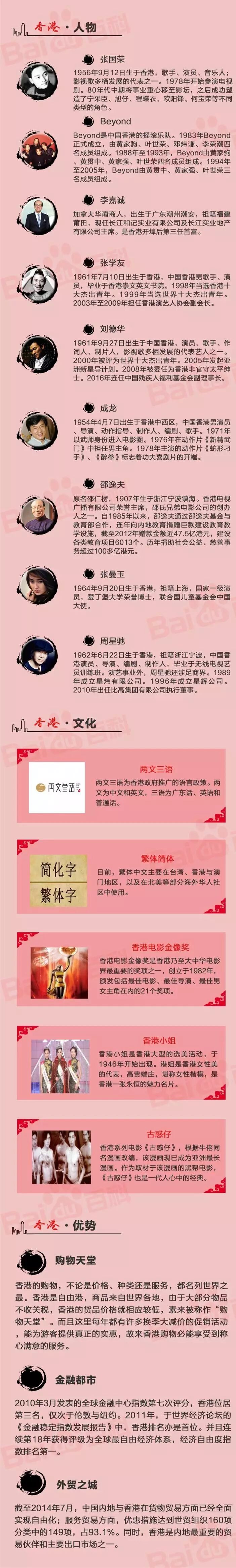 香港是中西方文化交融之地,把华人智慧与西方社会制度优势合二为一,以廉洁的政府、良好的治安、自由的经济体系及完善的法制闻名于世,有“东方之珠”、“美食天堂”和“购物天堂”等美誉。