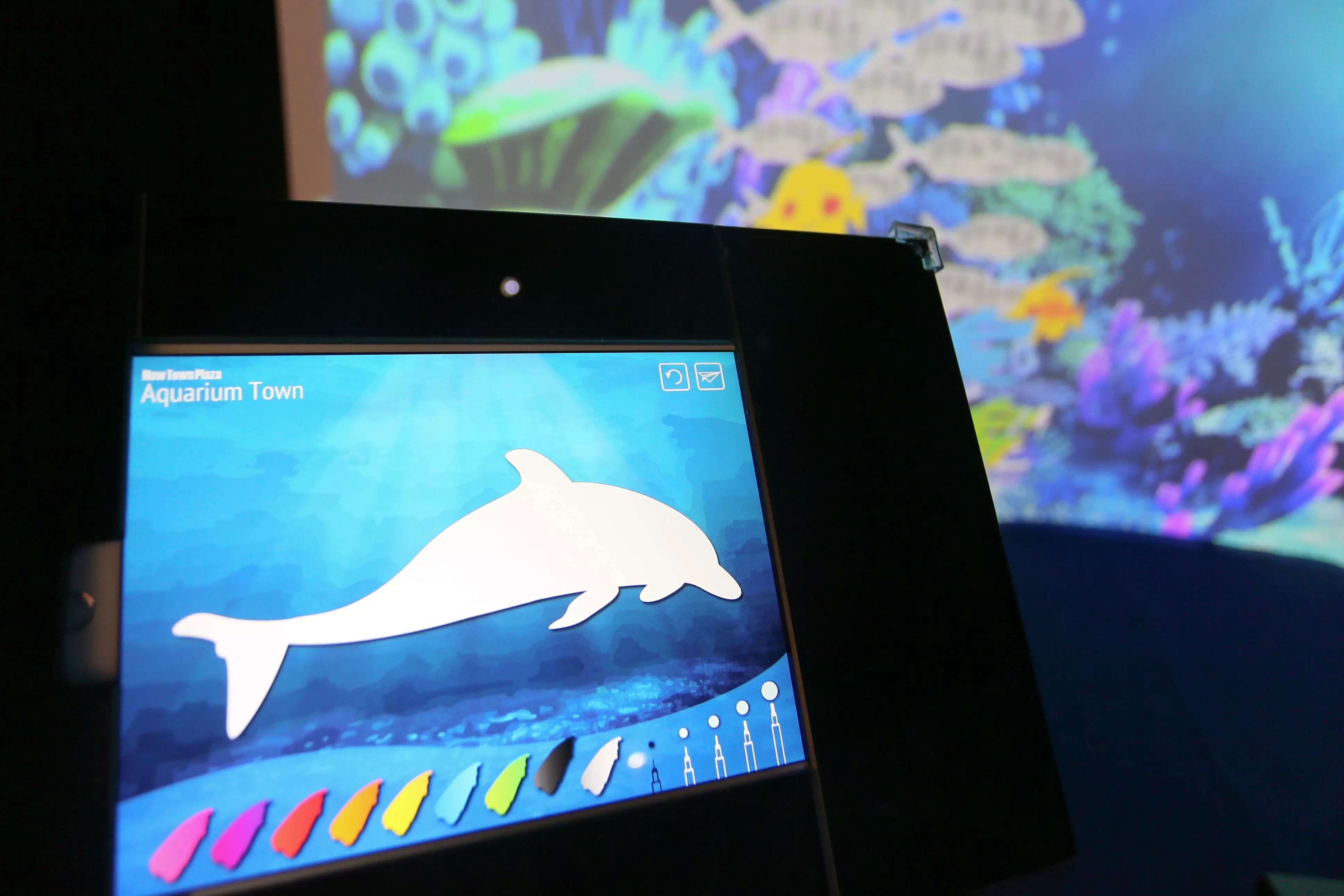 场内设有「Color of My Ocean」角落,让大家发挥创意为6款海洋生物(包括:水母、热带鱼、海豚、海龟、小丑鱼及中华鲟)赋予缤纷色彩,作品经电子处理后将实时「游」进巨型电子水族观景窗,与其他海底生物一起跃动起来,拉近人与海洋的距离,宣扬爱护海洋的重要讯息。