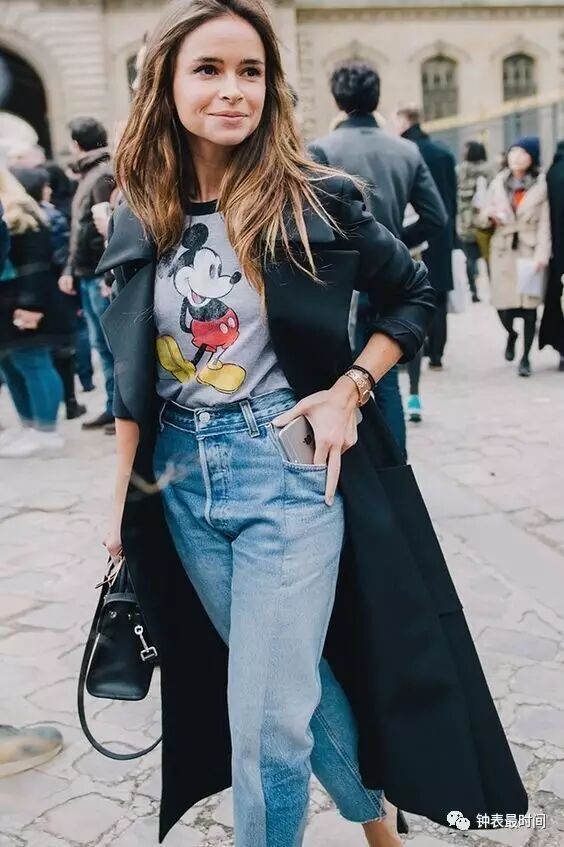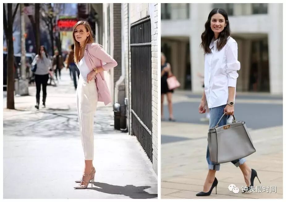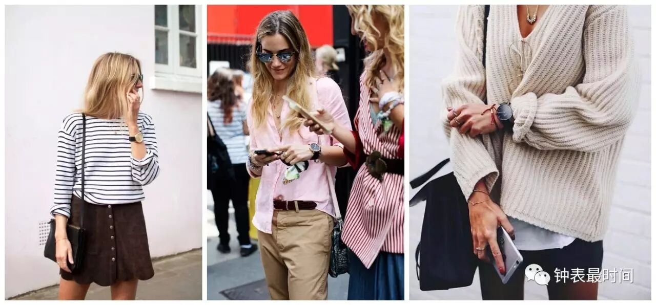跟ol不同,街拍玩的是色彩和前卫,所以在选择手表的时候,色彩简约的男性手表比霸气大表盘的腕表更hold的住effortless chic。