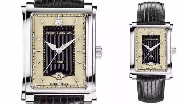 这款库尔沃名流系列腕表是雪茄元素方形款,复古烟黄与黑色表盘,中心区立体日内瓦纹设计,简约粒状时间刻度搭配夜光功能,大三针大气,6点钟方向CYS老爷车标志日期窗呼应12点方向立体CYS浮标,刻有1882年纪念诞生。