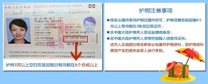 ⑤ 有效期要有至团队回程日期起6个月以上,签证页不得低于3页(备注页不算);