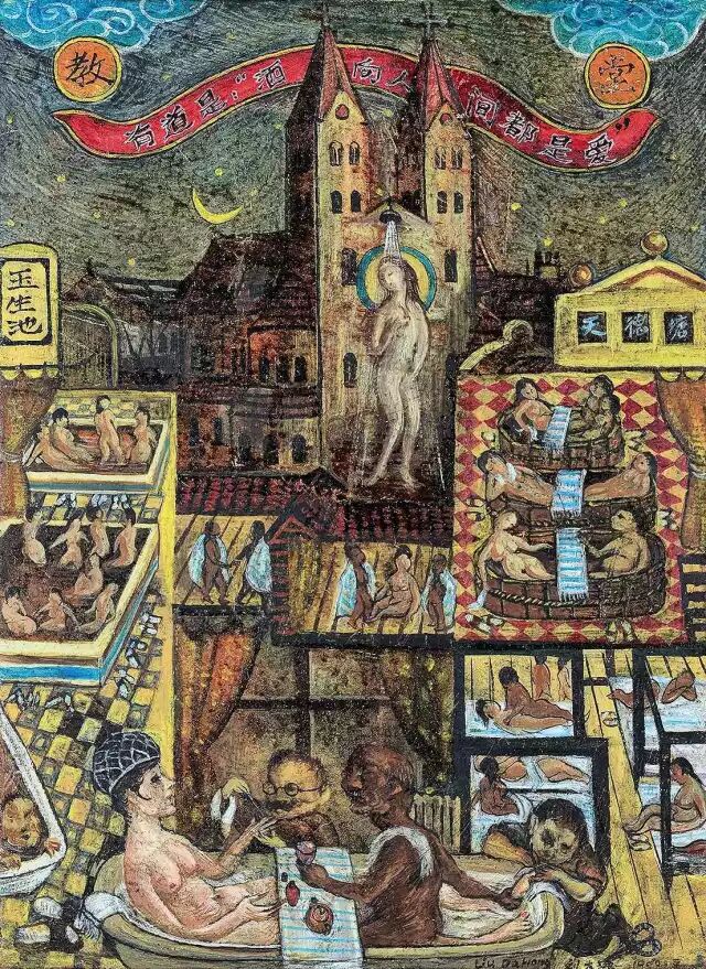 刘大鸿《九〇年手抄本》之一《教堂》,表现了灵与肉的洗礼。