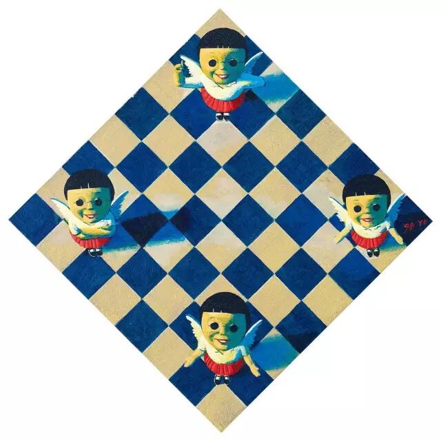 作品中的方格元素曾多次在艺术家作品中出现,可谓其经典符号之一,其最早的灵感得自于艺术家在德国留学期间第一个合作的画廊——Taube画廊展厅的地板图案,在这个展厅中,刘野举办了人生第一个个展,可谓意义非凡,配以童话般姿态不一的女孩,展现出好似每一个小小的方格都是人生中迈出的步伐,而如方格子构图般平衡的世界似乎也只有在童话之中才能实现的画外之音。