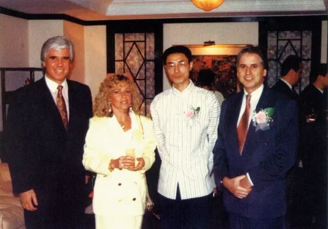 1992年 刘大鸿(右二)与文少励(右一)于中国会举办人生首个个展,该展览也为少励画廊举办的第一个艺术家展览。