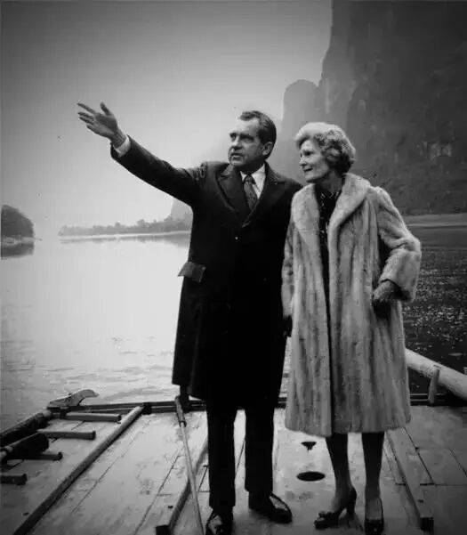 ▲美国总统尼克松与夫人游漓江