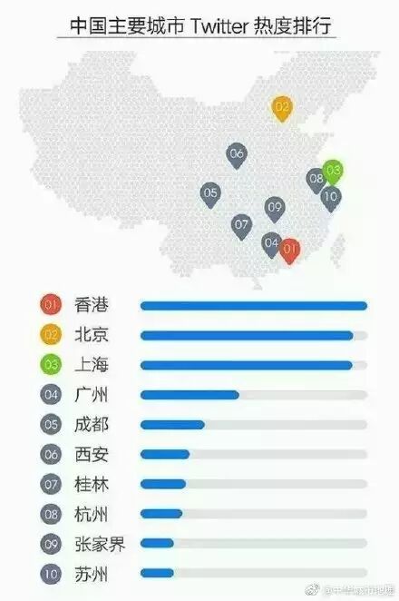 近日,一份中国主要城市Twitter热度排行火了!从榜单上看,香港、北京、上海堪称是最具国际影响力的城市,而桂林的影响力竟比杭州这样的准一线城市还要高!