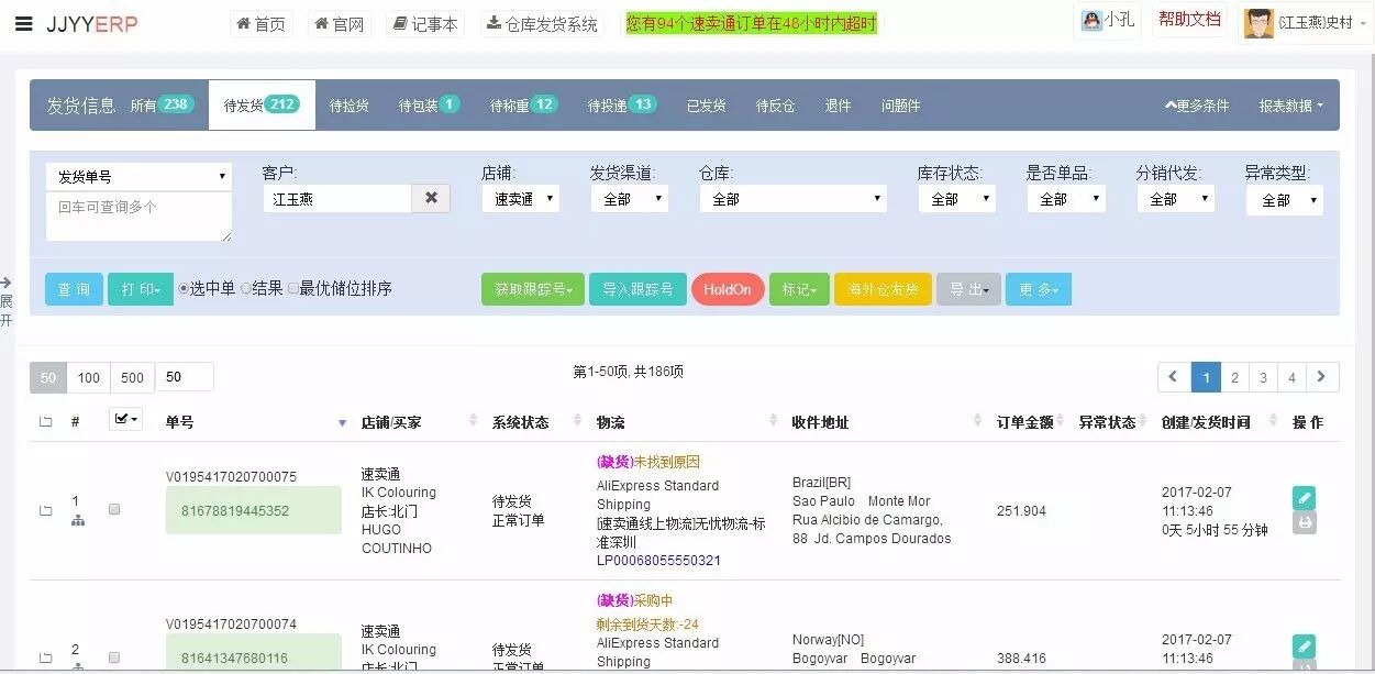 工厂或品牌商发出订单后,跟踪号会通过叽叽歪歪ERP自动返还给分销商速卖通后台进行添加,省时省力又精准。