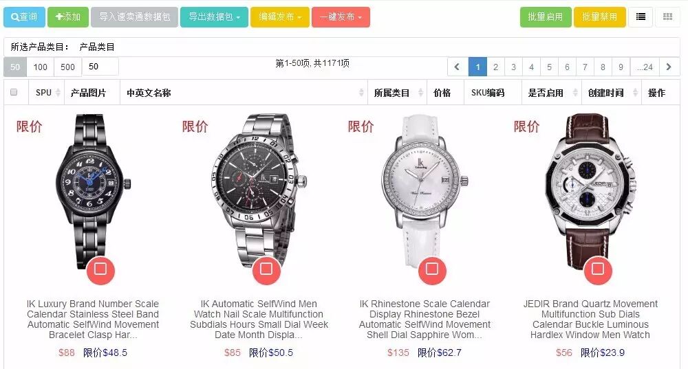 分销商可以针对于工厂或品牌方在叽叽歪歪ERP里面制作好的数据包进行编辑上架或者一键上架到速卖通店铺中,亦或者导出