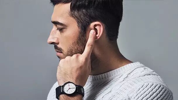 上图这个小帅哥一根手指放在耳朵边的样子帅不帅?没错,他就在用 Sgnl 打电话,而且使用 Sgnl 几乎没有门槛,无论你的手表是否智能,把 Sgnl 表带安装上去后,只要用手按住耳朵,就可以接听电话咯。