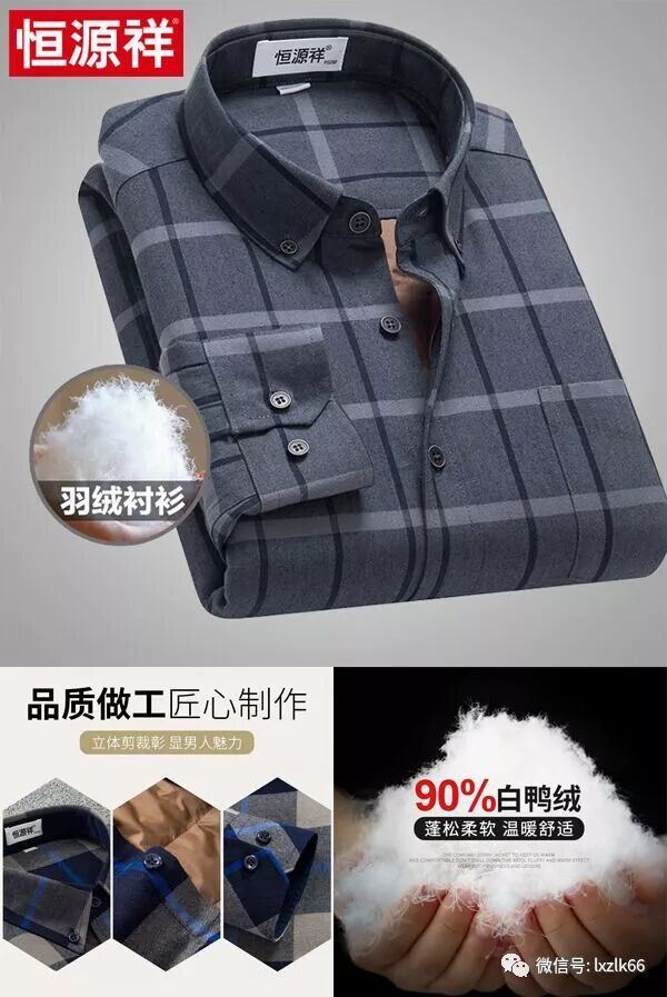 恒源祥羽绒衬衫,百分之90白鸭绒,纯棉面料,优质羽绒,蓄热复合一体,360°全面呵护,对抗零下20℃严寒,冬日必备之选,恒源祥,品质有保证。