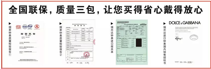 品牌承诺:瑞士品牌、工厂直供、全国联保、假一罚十