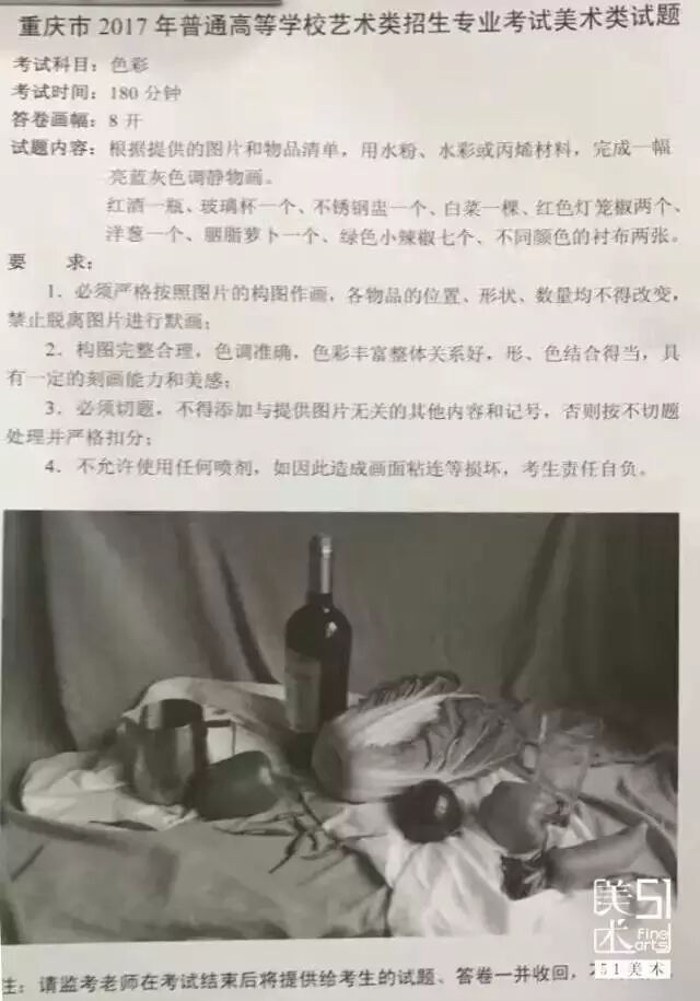 5、不允许使用定画液等喷剂,如因此造成画面粘连等损坏。考生责任自负。