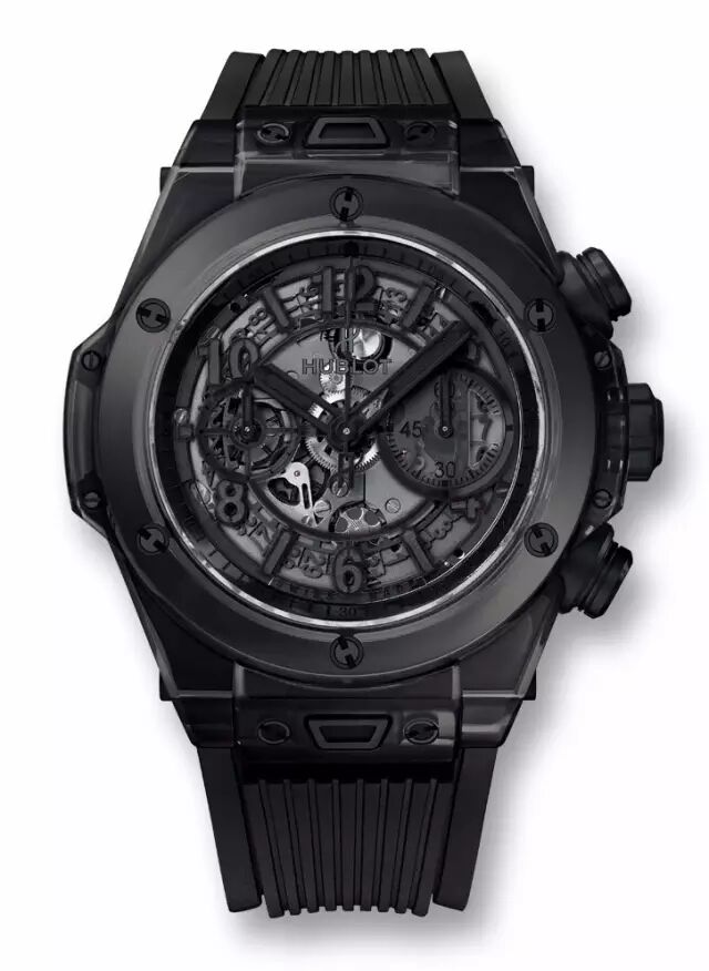 Unico蓝宝石全黑腕表,将看似矛盾的“透明”与“全黑”相结合,并通过镂空表盘的设计令机芯的精密构造一览无遗。
