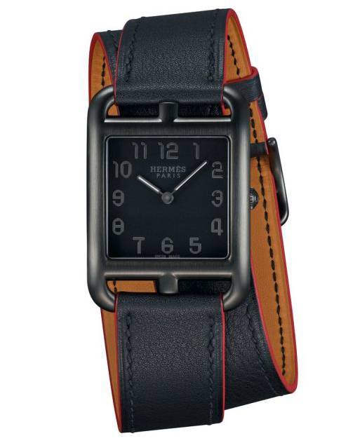 是爱马仕腕表的经典款腕表,引领了现在市面上越来越多跟风的双圈表带潮流,它的表盘是一种“把正方形嵌入长方形”的设计,由此形成的像皮带扣一样的表耳,天然就应该和柔软的皮表带搭配缠绕在一起,一圈不够,来两圈。