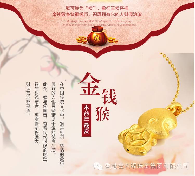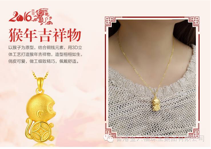 说 明:活动期间将本条链接分享至朋友圈集满20个赞即可到黄江镇黄江大道48号KLF香港金六福珠宝(集团)有限公司免费领取3D金猴吊坠一件!活动限量不限时,郑重承诺本次活动一切免费.真实.有效!