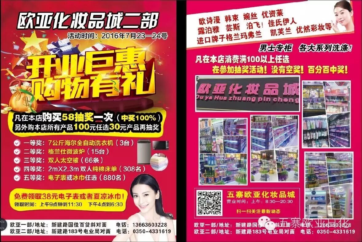 隆重通知:最后一天欧亚化妆品城开业巨惠抽大奖