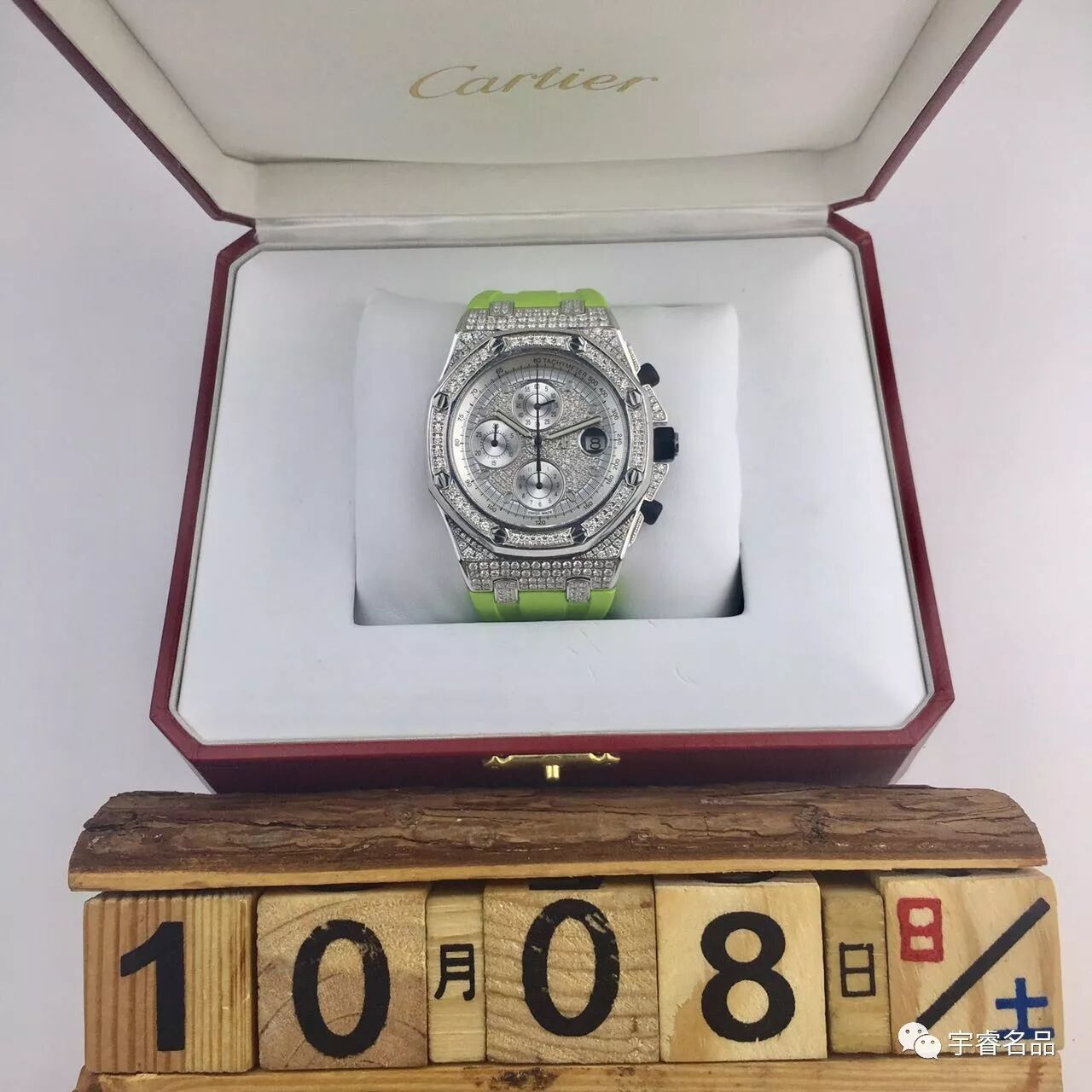 后镶满天星 搭配绿色橡胶皮带 骚气十足