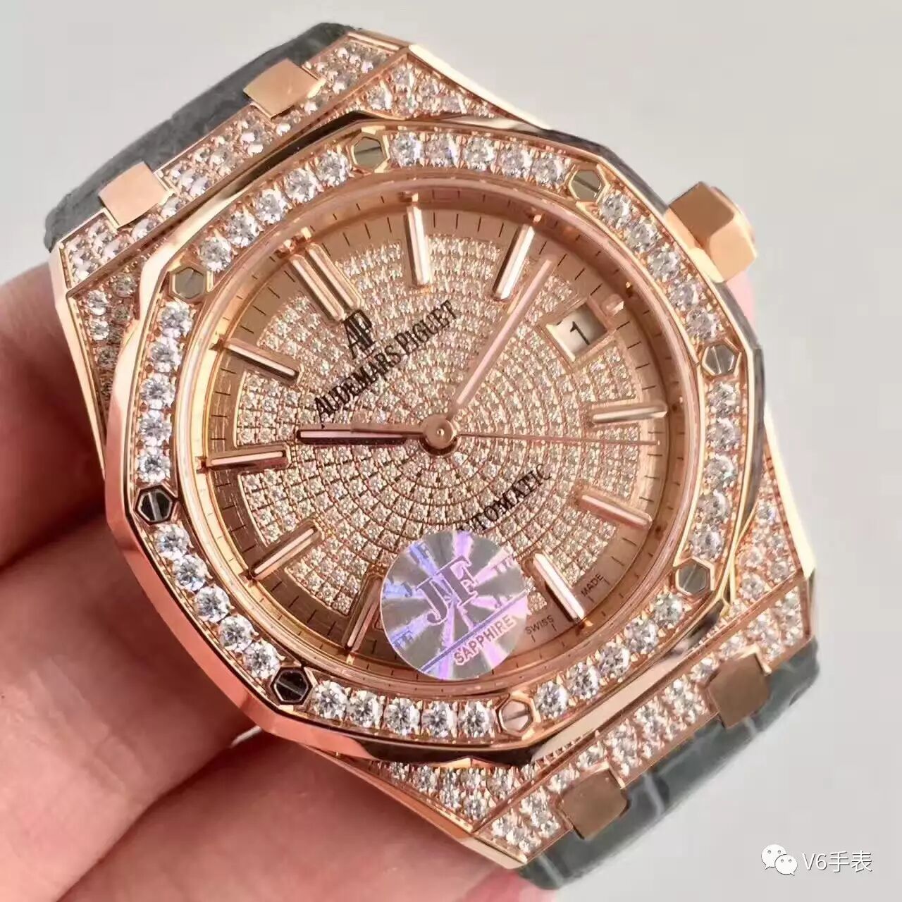 JF精品 AP15402爱彼 满天星 行业唯一买正品开模,厚度与结构和原版一样 釆用3120机芯,表带罗丝双边抛光和扣子唛头完全原版一致。系列全新升级包装配套。每个表都有独立的吊牌和身份证号[微笑]