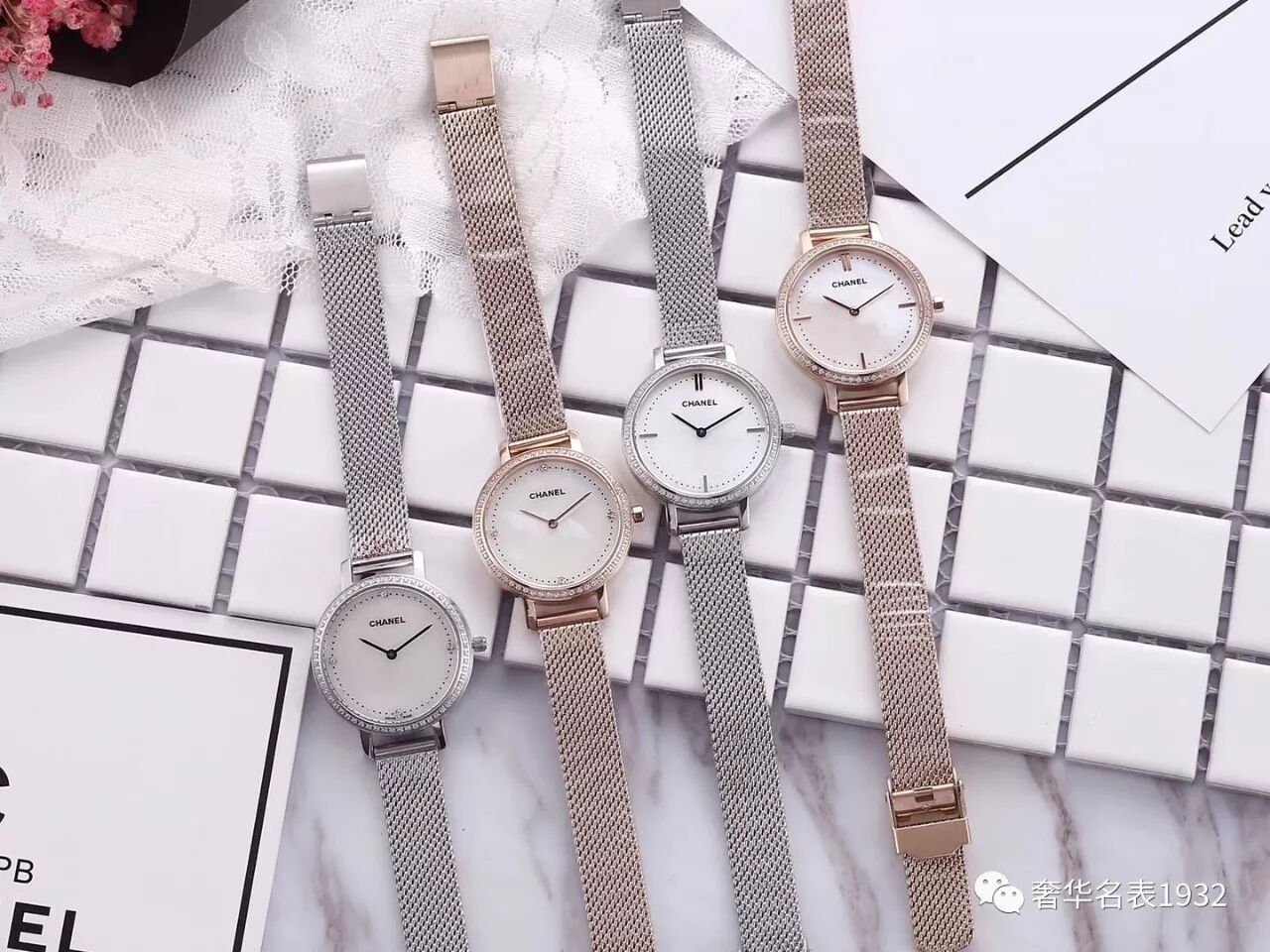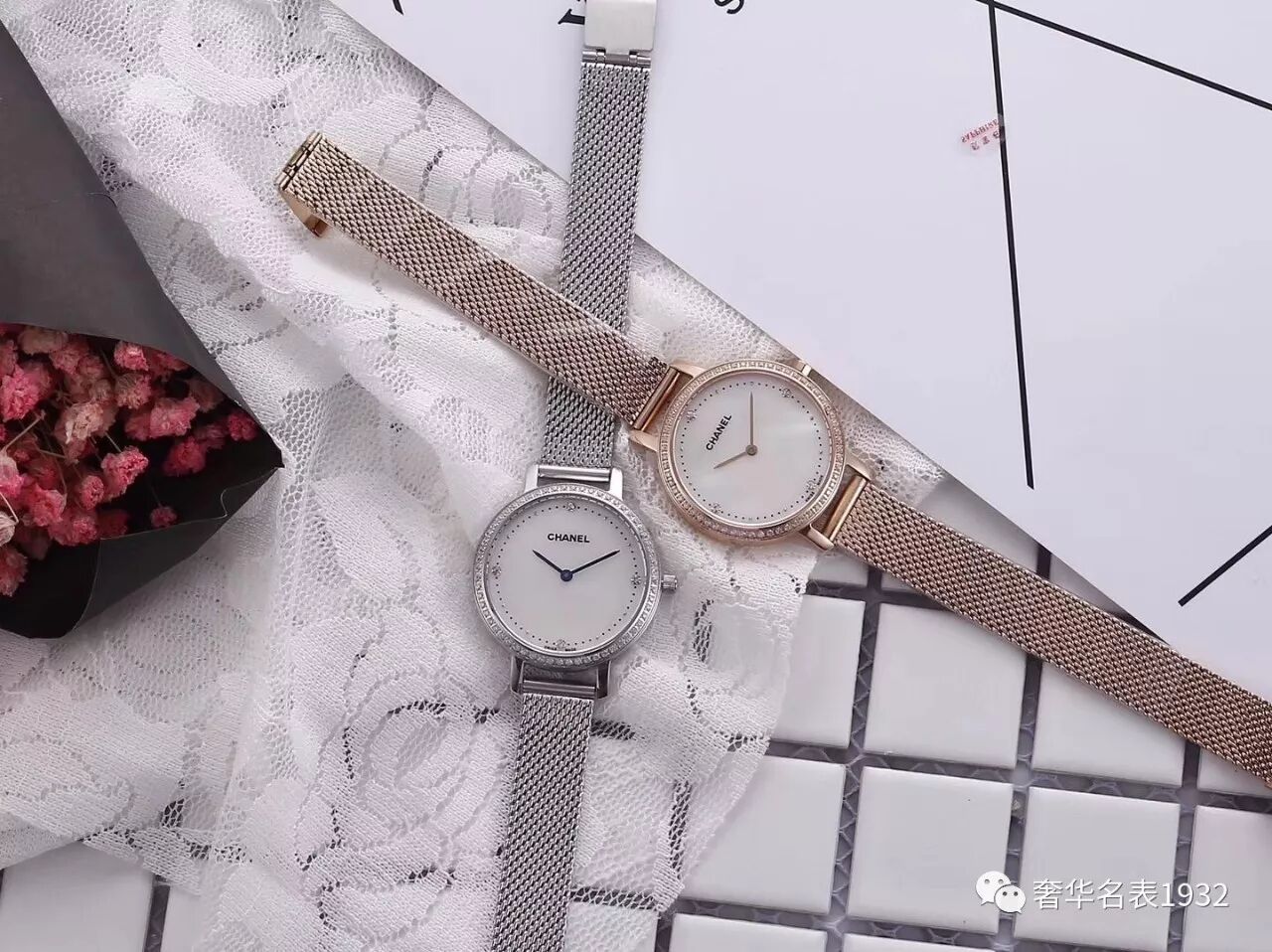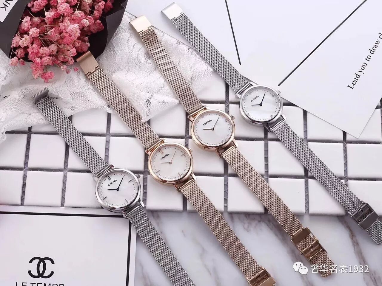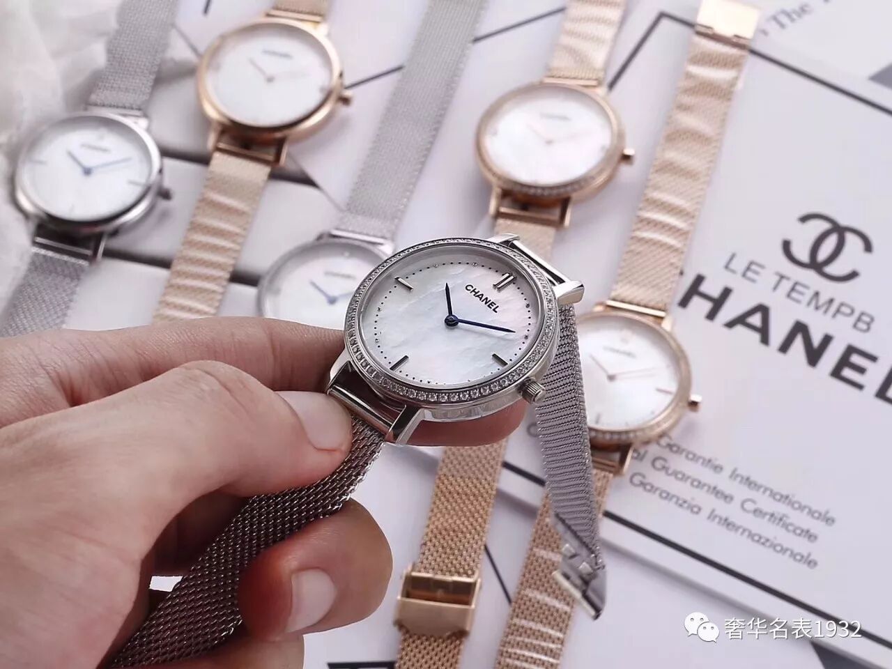 让所有的目光与托付赋于一表---香奈儿极致优雅女表 分秒雕琢,玲珑之美!瑞士石英机芯 蓝宝石镜面 316纯精胚特制钢壳 31mm小巧表盘 简约温婉 珍珠贝母镶钻 气质绝尘 米兰尼斯编织钢带 风格细腻 ! 月有圆缺,只愿你时光不朽,不迎合,不逐流!