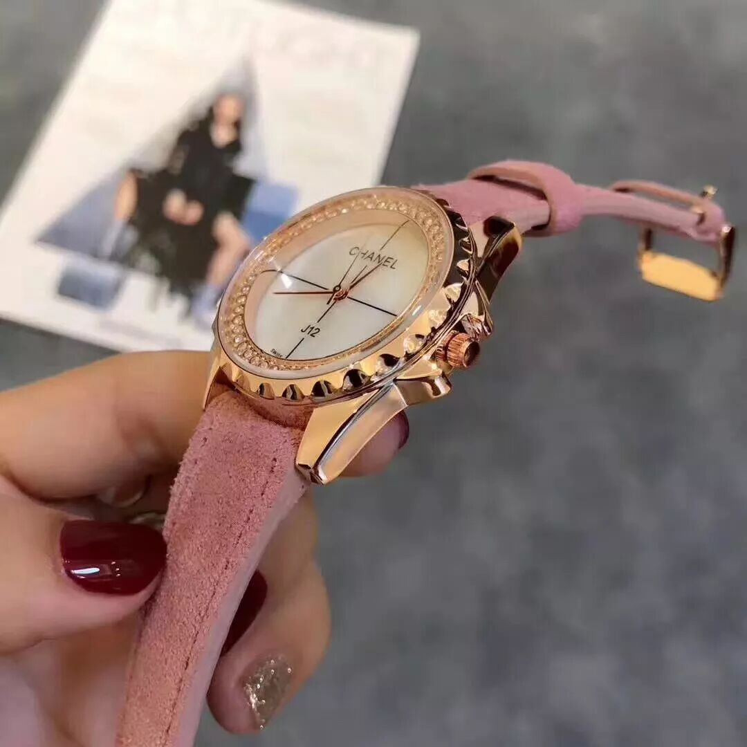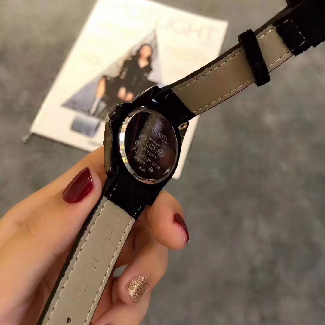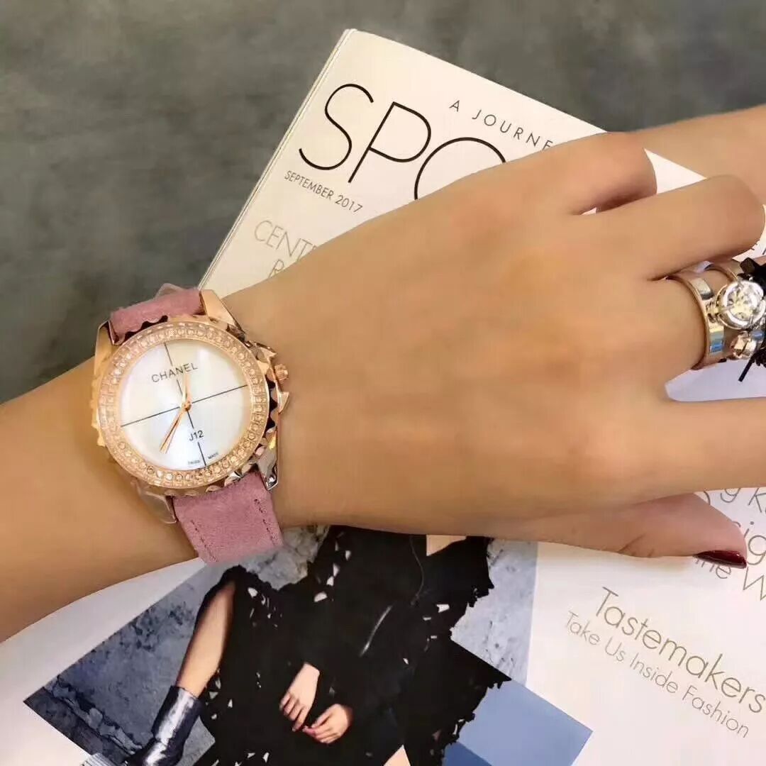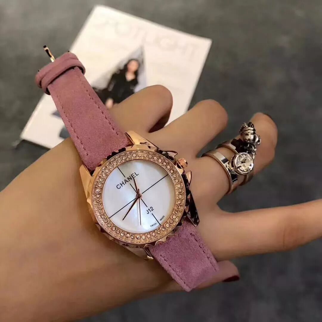 特价¥90 所有包装小票齐全 独家新款到货香奈儿J12 系列,此款产品跨越了传统概念的"时尚",现代年轻,简柔优雅,充分的体现品牌精神,进口石英机,珍珠贝母面,鹿茸真皮带,防水品质!2个颜色尺寸37*10mm