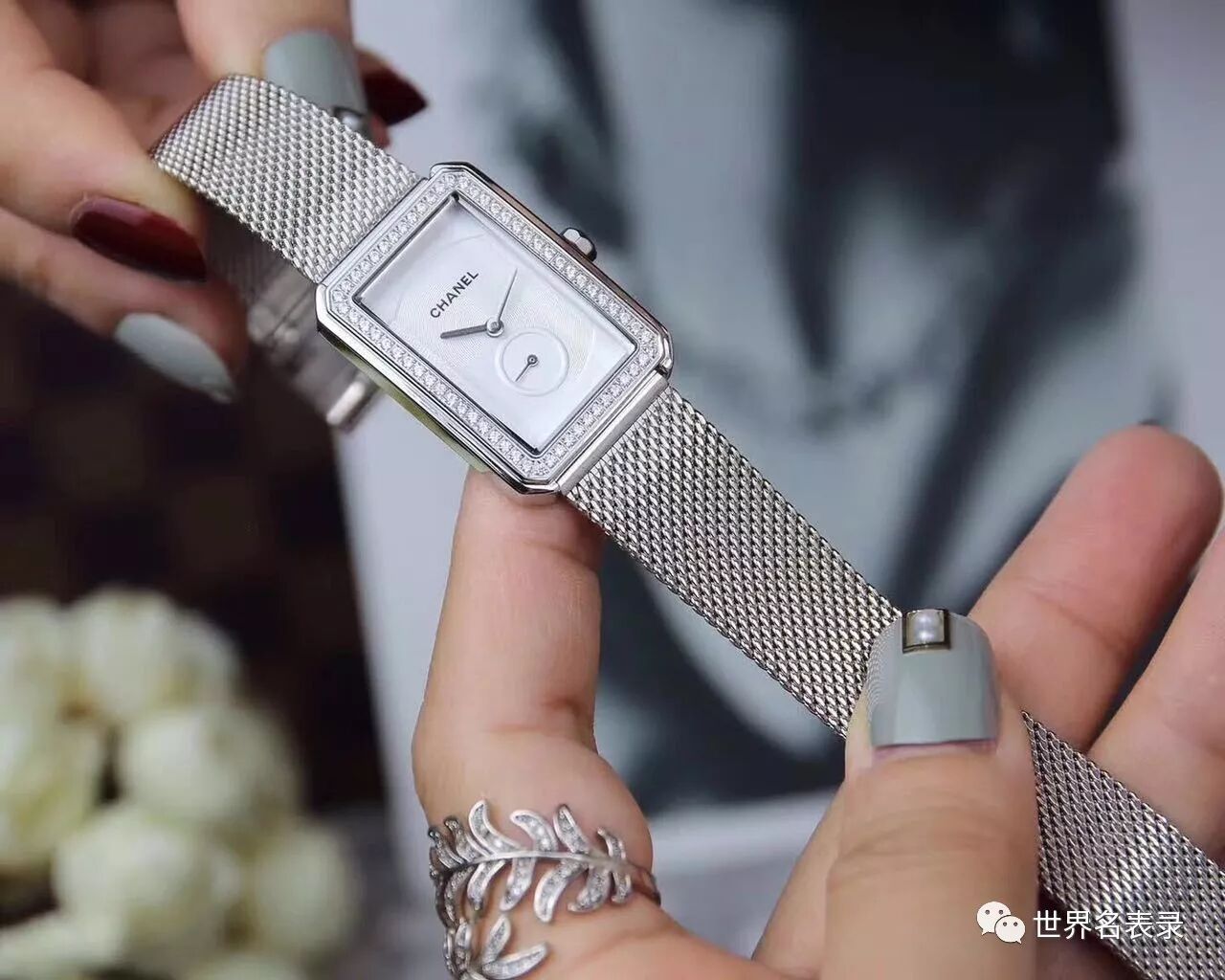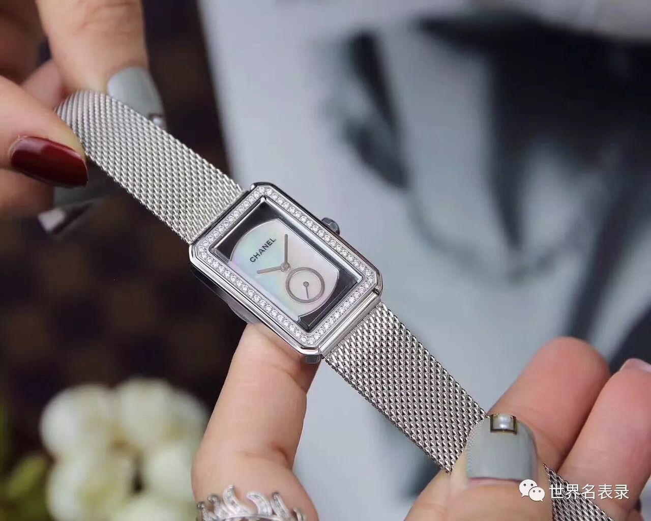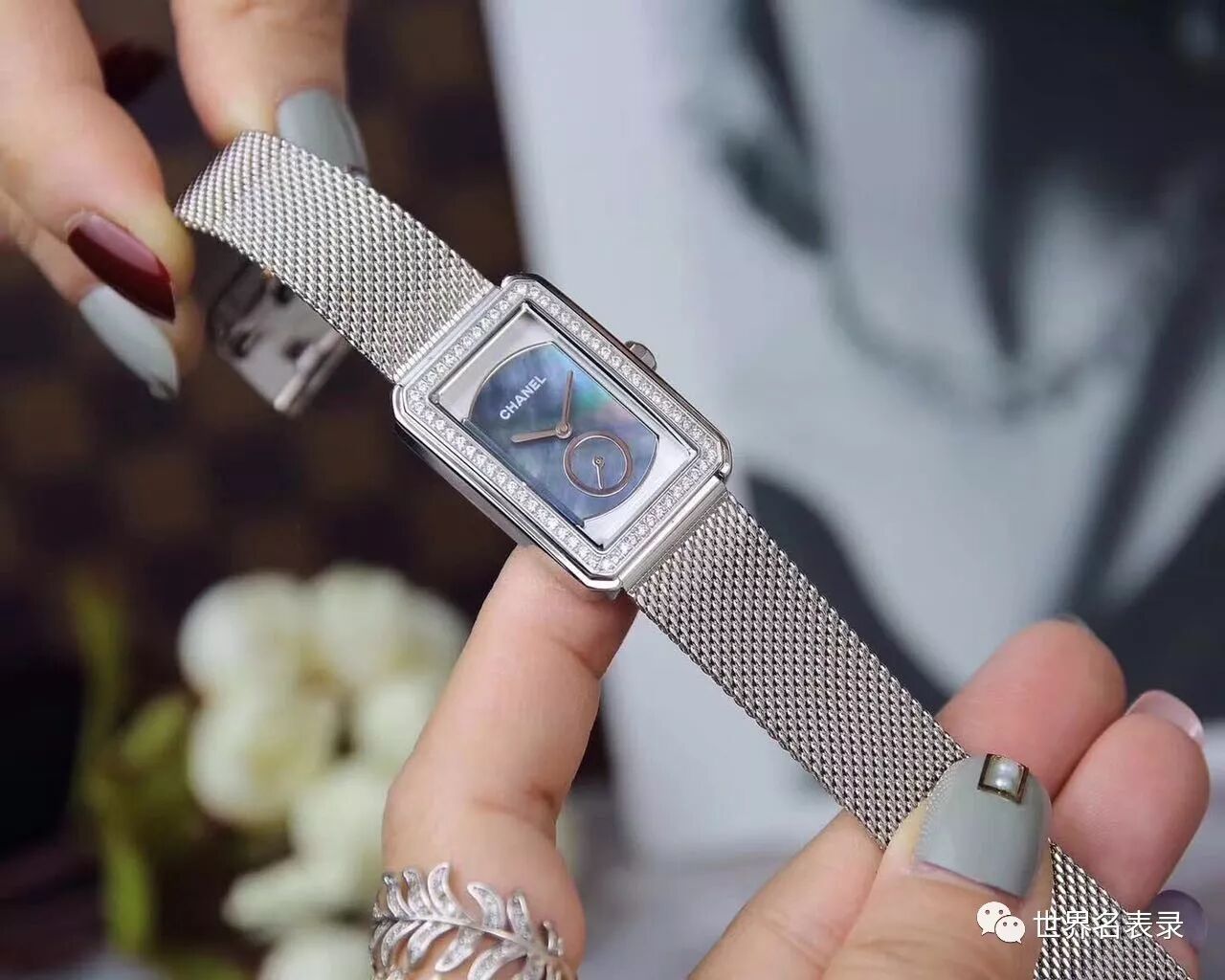 CHANEL【香奈儿】时尚女士石英腕表来自Boy.Friend系列诚意推荐,采用简洁、干净的中性化设计,又不失女性的温柔感实物整体质感超级高端,316L精钢表壳,进口石英机芯,采用斜边切割3D立体蓝宝石水晶镜面,表盘由雕文及珍珠贝母两色相见双层立体字面,时尚网带独具经典风采尺寸【24mm*30mm*8mm】