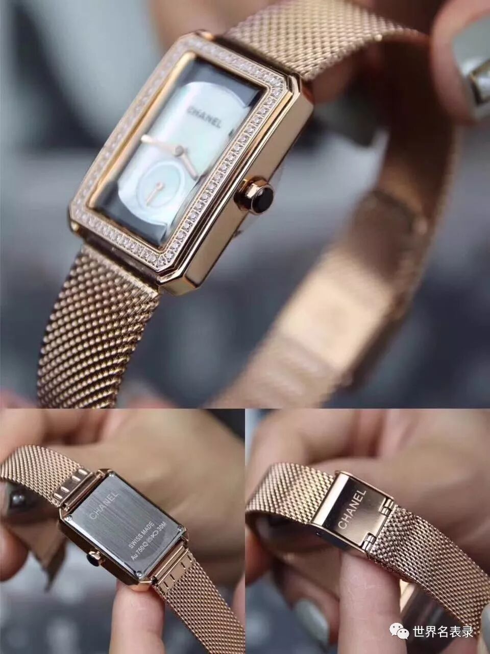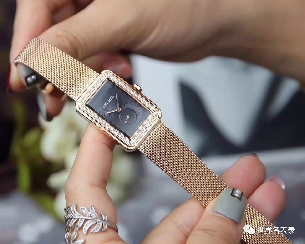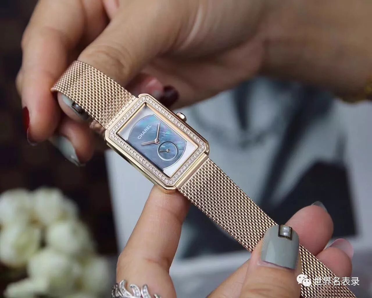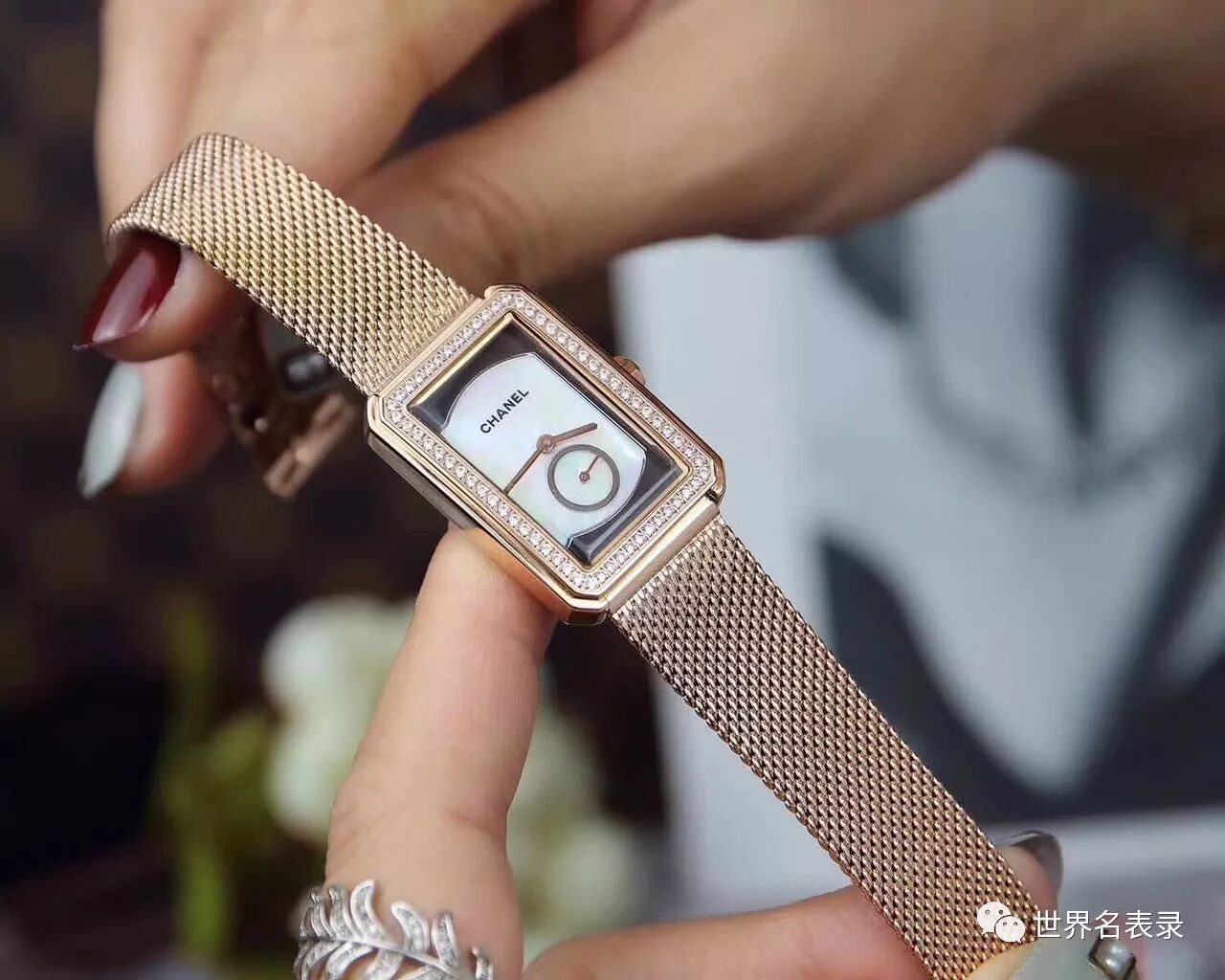 CHANEL【香奈儿】时尚女士石英腕表来自Boy.Friend系列诚意推荐,采用简洁、干净的中性化设计,又不失女性的温柔感实物整体质感超级高端,316L精钢表壳,进口石英机芯,采用斜边切割3D立体蓝宝石水晶镜面,表盘由雕文及珍珠贝母两色相见双层立体字面,时尚网带独具经典风采尺寸【24mm*30mm*8mm】