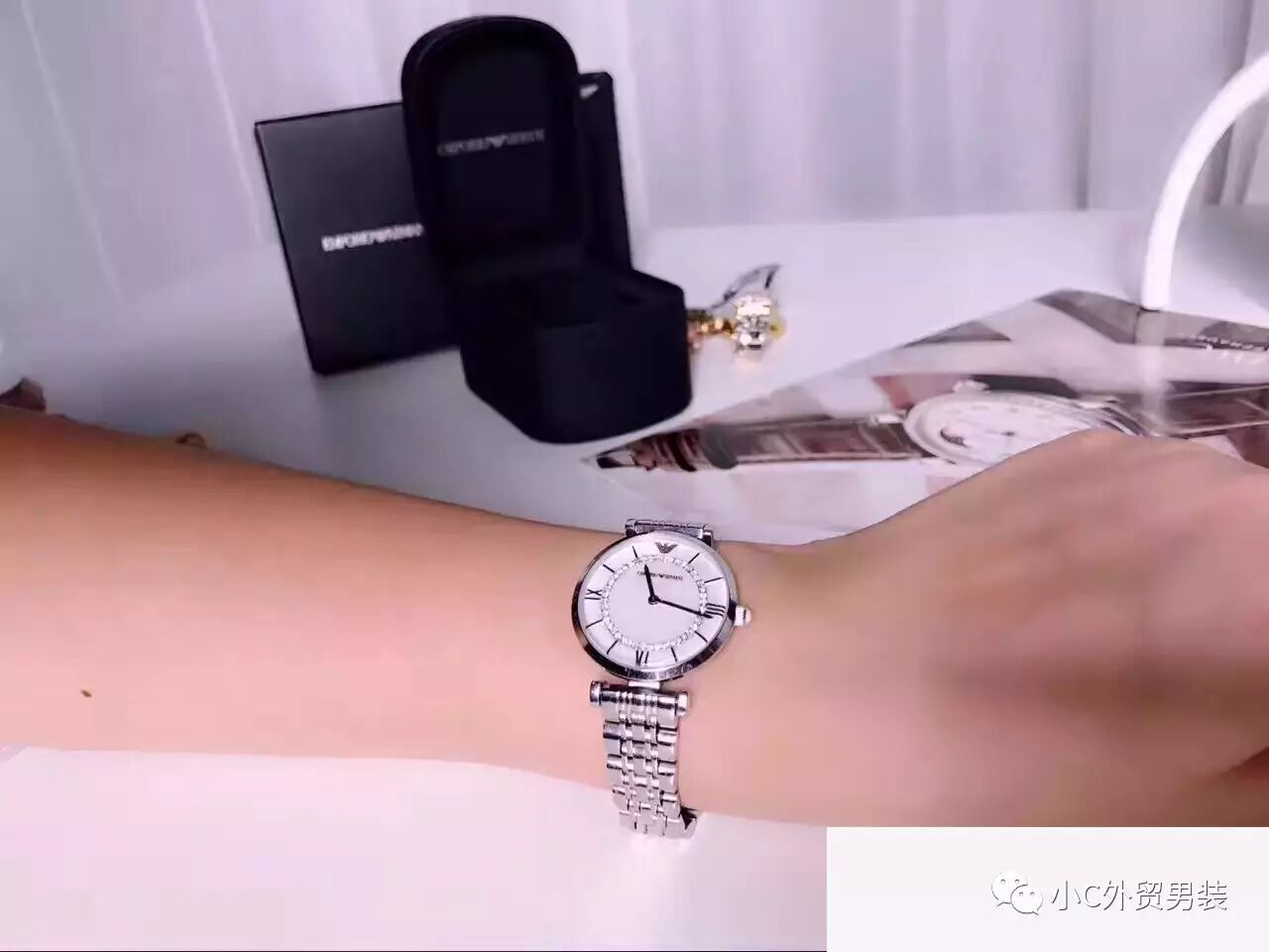 ARMANI女款天然贝母镶钻表盘腕表,刚给看一了上手效果,
