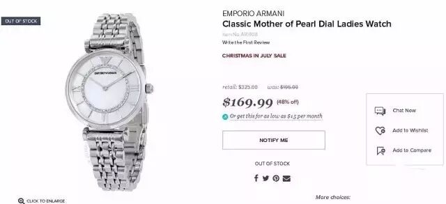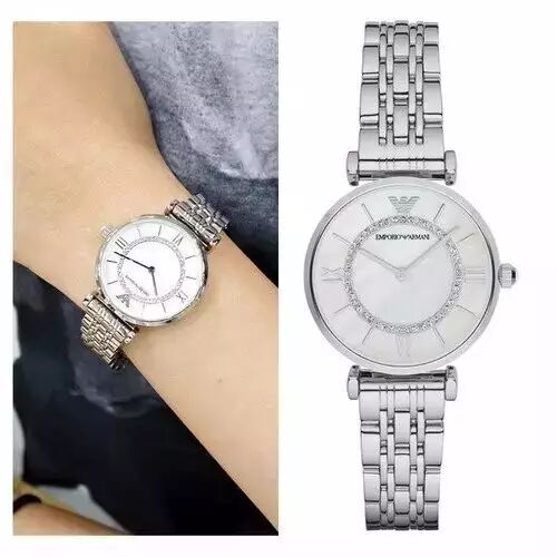 ARMANI女款天然贝母镶钻表盘腕表,刚给看一了上手效果,