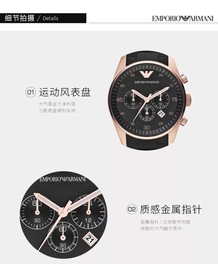阿玛尼(ARMANI)手表 多功能三眼计时运动男表 意大利风格简约时尚质感男士腕表 AR系列