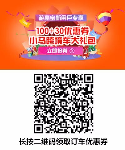 长按下方二维码即可获得小马跨境车为游惠宝粉丝提供的专属优惠券!(商务车/大巴 抵扣券)