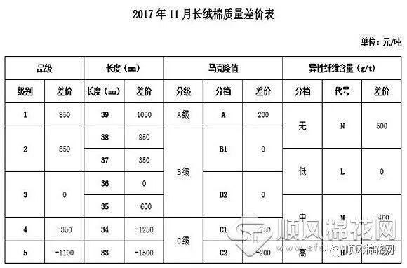 其余质量指标差价幅度以及《长绒棉质量差价表》保持不变。