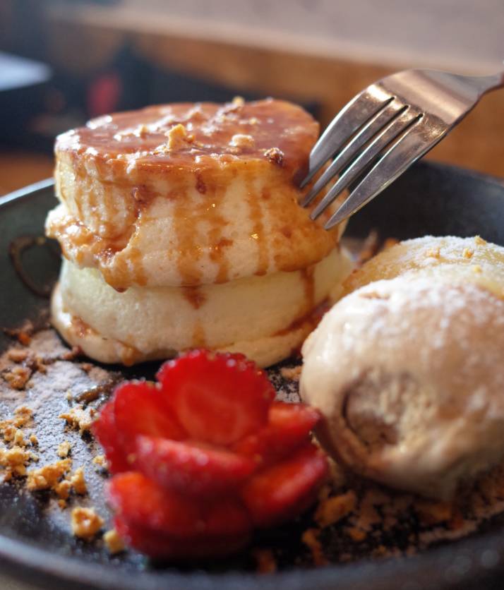源于法国轻盈蓬松的梳乎厘与日本松软香甜的松饼合体,梳乎厘班戟由此诞生!一款从日本爆红到香港的超治愈美食,有着如半熟鸡蛋一般吹蛋壳破的外在,还有着空气感十足的超治愈食感,咬一口就像咬了一口软绵的云朵一般让人舒心。