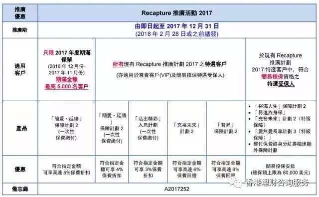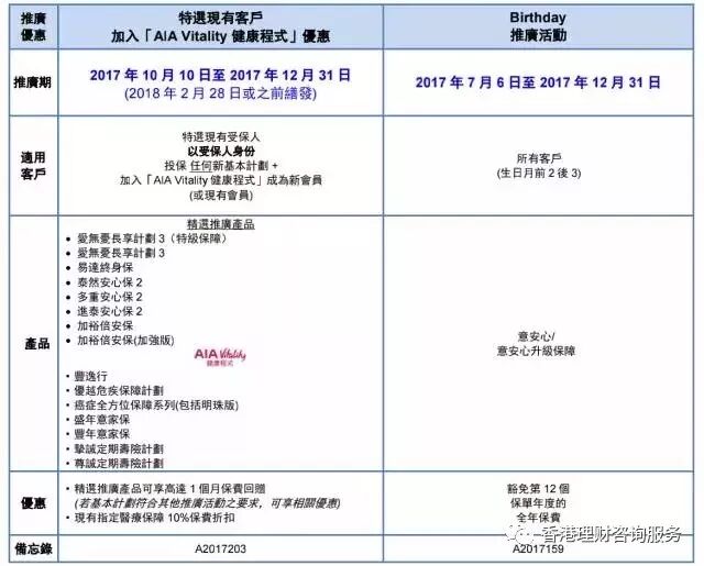 友邦香港特别延长以下活动的推广期至:2017年12月31日