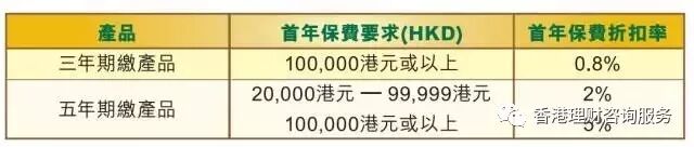 凡于推广期内,成功以年缴方式投保以下特选推广产品,即可享首年保费折扣优惠!