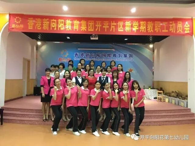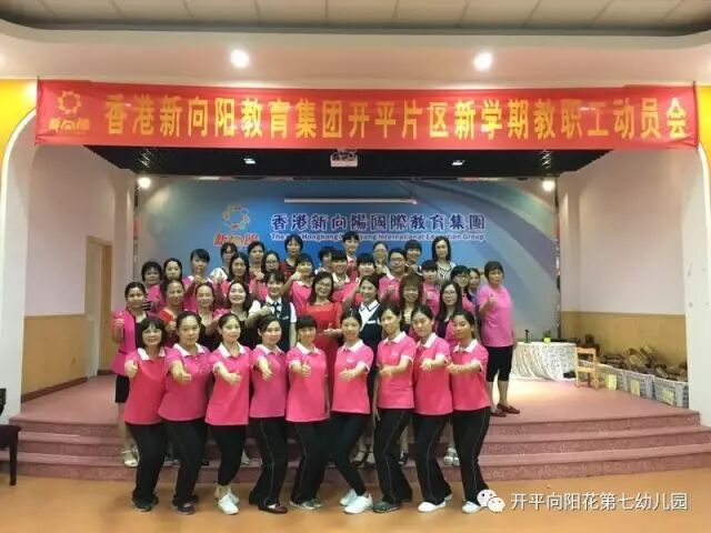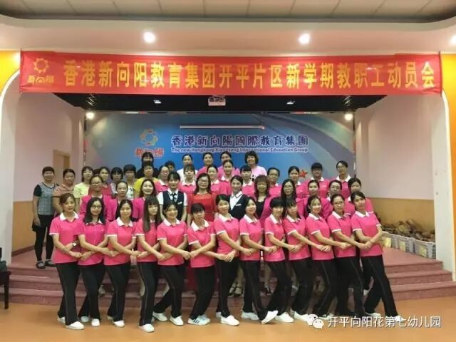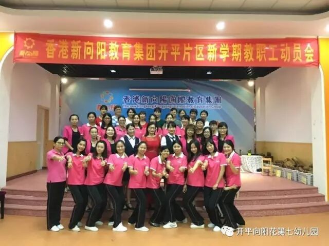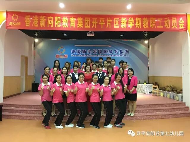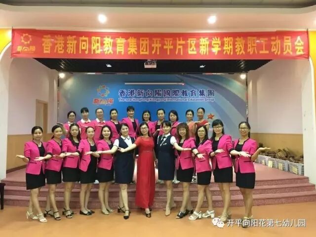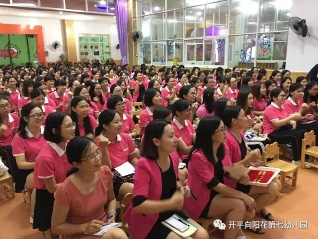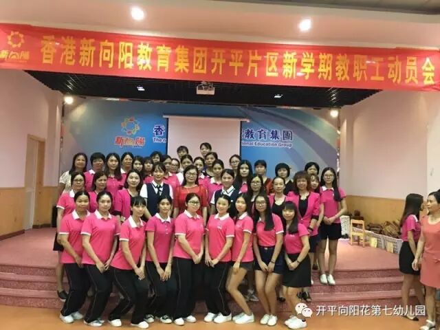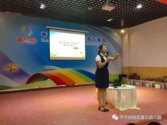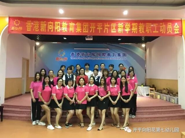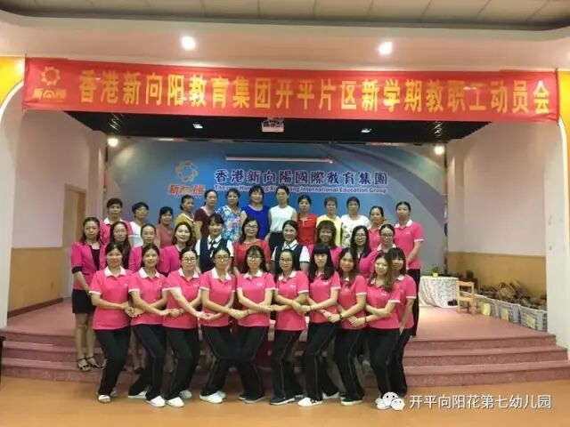 2017年9月4日下午,新向阳开平片区教职工齐聚向阳花第七幼儿园大礼堂,进行充满正能量,让爱传递爱,幸福传递幸福的新学期教职工动员会。首先,新向阳国际教育集团董事长胡嫡女士进行完美人生和集团新学期各分园艺术拓展项目计划。