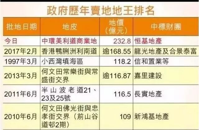 看看香港地产在这些年的地王历史,见下面的图片内容: