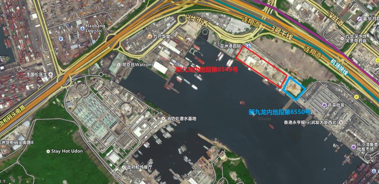 在这块住宅用地旁边,就是“新九龙内地段第6550号地块”,也就是图中蓝线围起来的区域,这是一块酒店用地,在今年10月30日出让,被新鸿基地产旗下的公司拿下,创下了香港“酒店地王”。