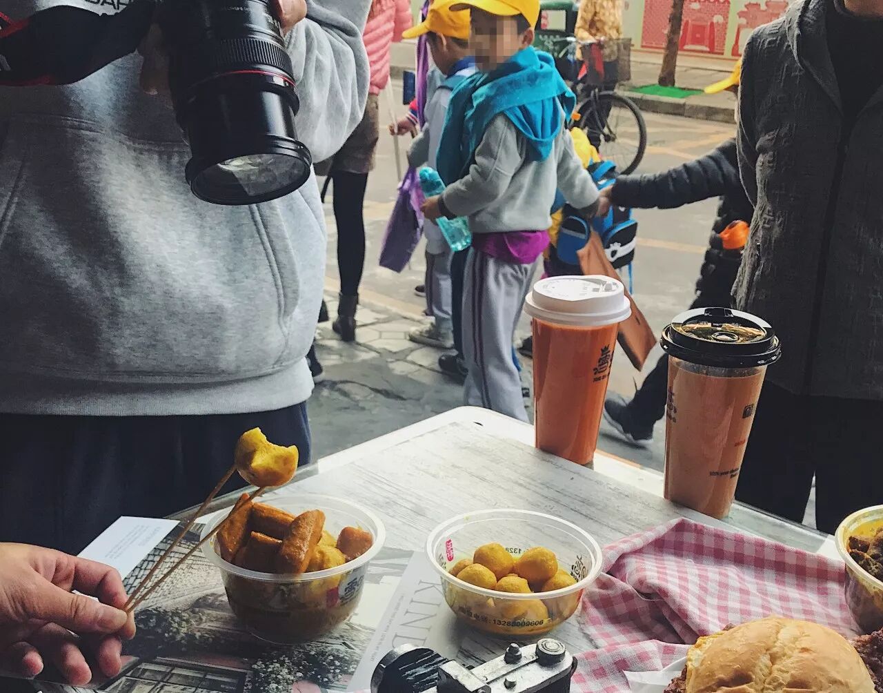 很早的时候,一辆小推车就能形成一个牛杂摊,往街边一停,放几张桌子椅子,不用叫卖也已经吸引了一大群人。那时候的油炸还只是5毛钱一串,攥着兜里的一块钱零花,还得纠结究竟选萝卜还是牛百叶。