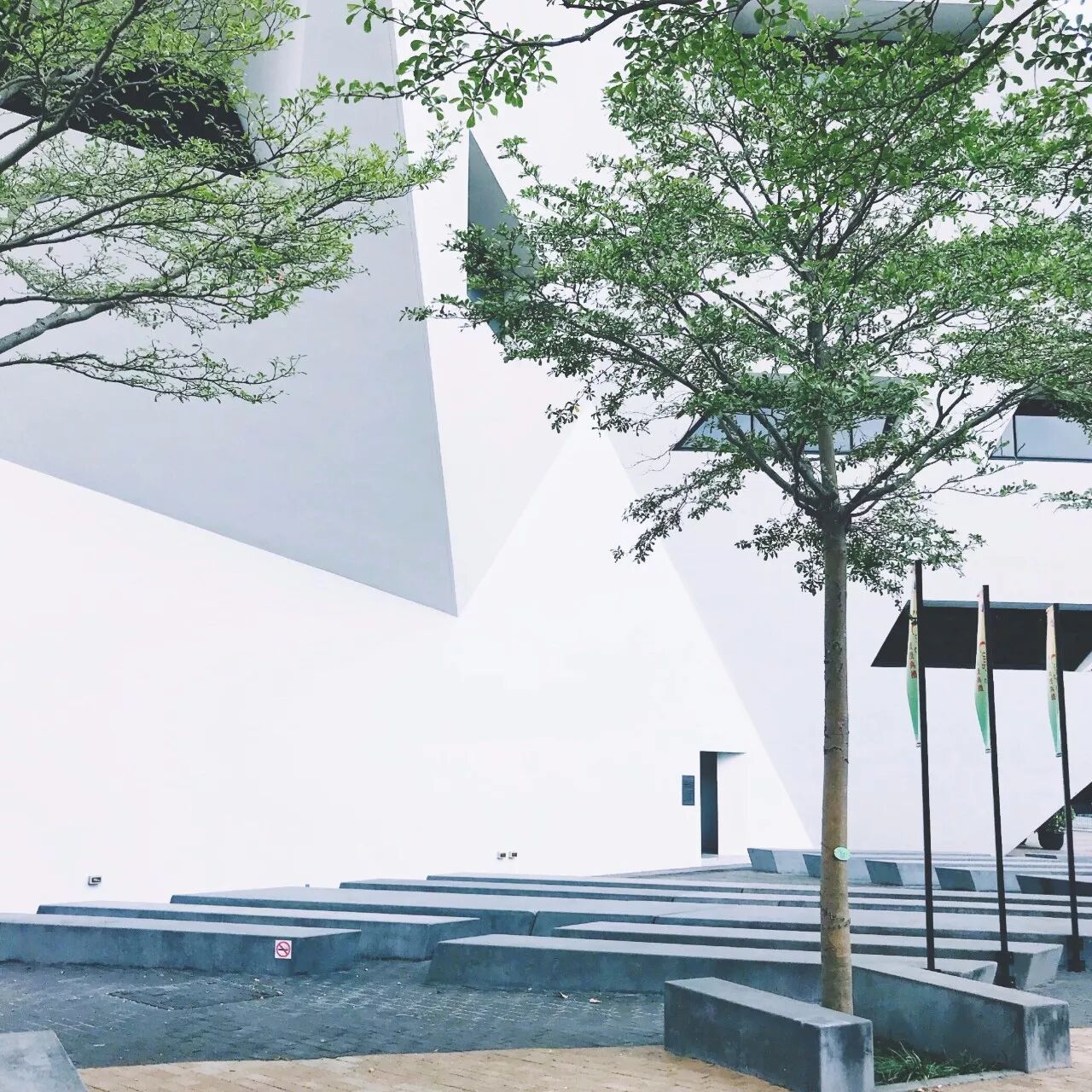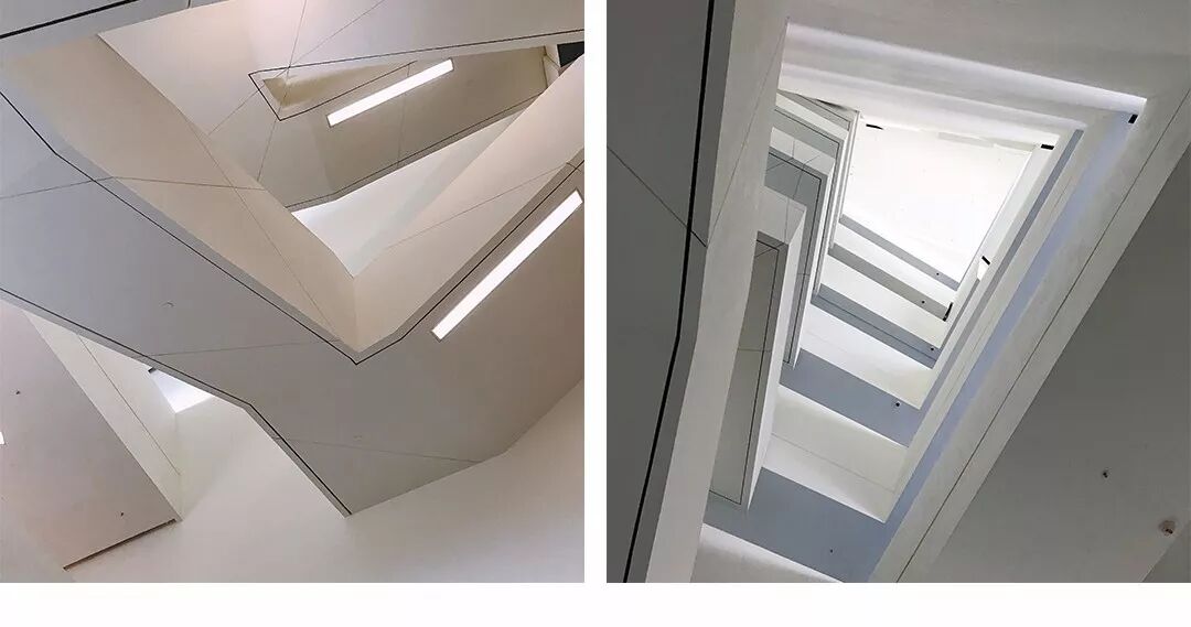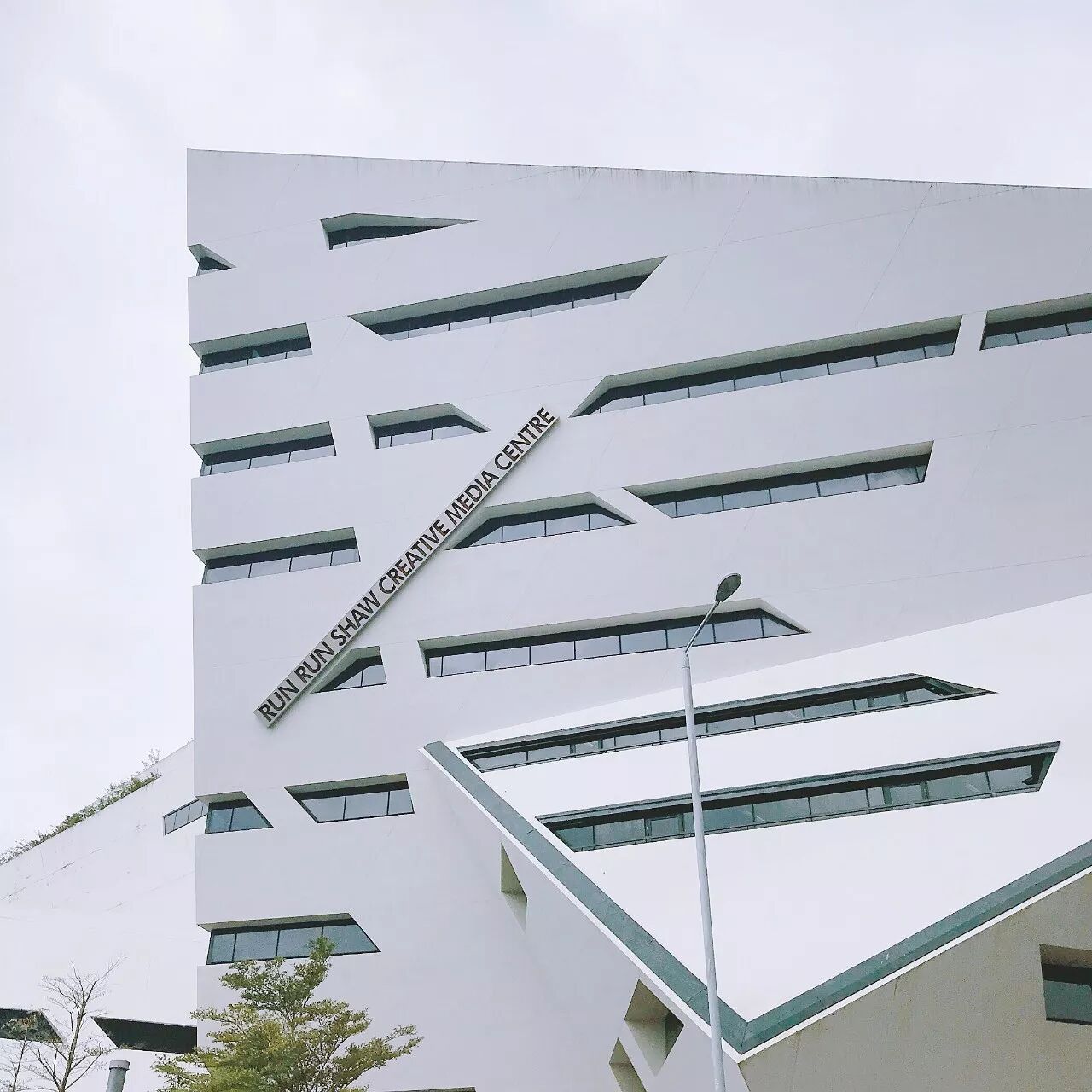 我还挺喜欢看建筑的,特别是有棱有角的,所以这次特意去了香港城市大学邵逸夫创意媒体中心,建筑是由美国著名解构主义建筑师Daniel Libeskind设计,外观很现代,不规则形状切割,室内楼梯是三角形的,也是非常未来感了。