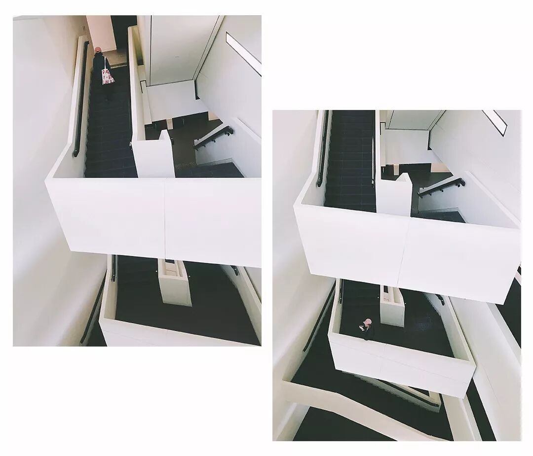 黑色的楼梯很酷,而且在不同角度拍都有不一样的感觉,真的可以拍上10086张了。