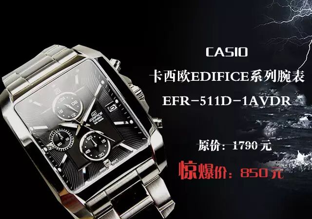 卡西欧EDIFICE系列,包括了CHRONOGRAPH秒表系列、Analogue(Muti-Hand)指针系列、Digital数字系列、OTHERS其它,成熟中渗透着休闲气息,优雅中流露出潇洒情调,Casio推出的Edifice情侣指针系列手表,百变的表款,搭配不同的心情。