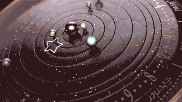 表盘上的每颗行星还都是根据真实的运行周期在移动,也就是说上面的地球绕一圈就是一年,真实地构成围绕太阳实时运行的微缩图像。