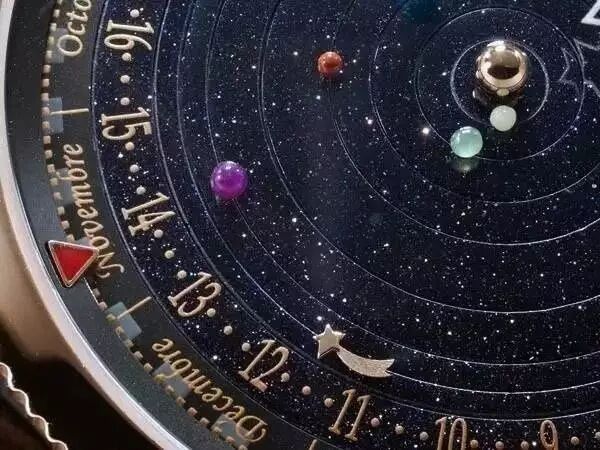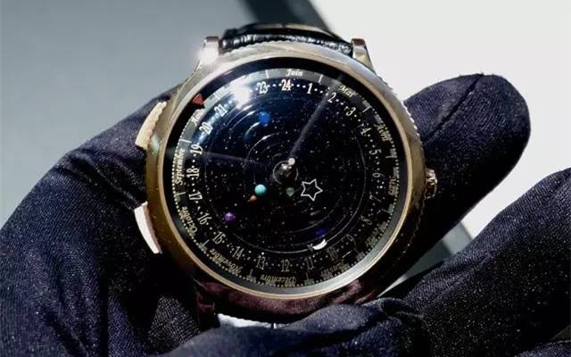 人家真的把太阳系直接装进了手表,表盘就是一个星空,以太阳为中心,环绕着的是地球以及金木水火土星。